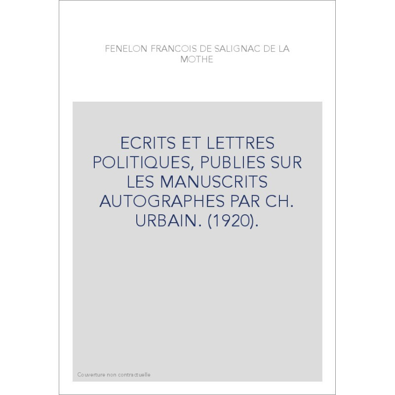 ECRITS ET LETTRES POLITIQUES, PUBLIES SUR LES MANUSCRITS AUTOGRAPHES PAR CH. URBAIN. (1920).