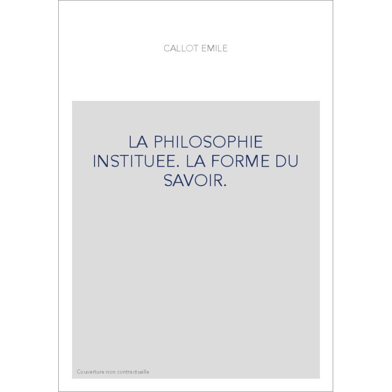 LA PHILOSOPHIE INSTITUEE. LA FORME DU SAVOIR.