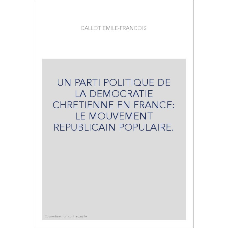 UN PARTI POLITIQUE DE LA DEMOCRATIE CHRETIENNE EN FRANCE: LE MOUVEMENT REPUBLICAIN POPULAIRE.
