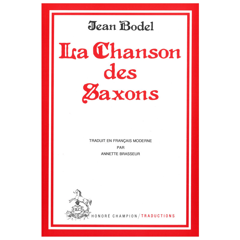 C'est seulement en 1989 que la Chanson des Saisnes ou Saxons, une des œuvres les plus originales de l'épopée médiévale, a été publiée intégralement. Après avoir réussi à isoler, dans une des rédactions maintenant connues de ce vaste poème, un important noyau qu'il est légitime d'attribuer à Jean Bodel, on a voulu faire apprécier du lecteur moderne, par une traduction à la fois fidèle et vivante, les qualités d'un poète à qui sa vaste culture et ses dons personnels confèrent une étonnante maîtrise de son art.