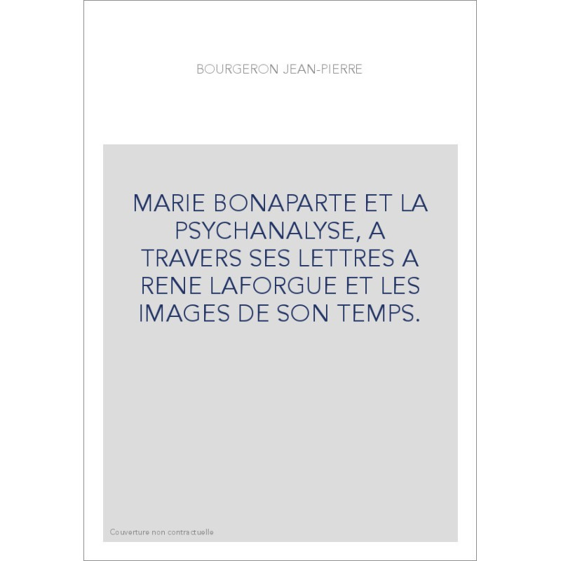 MARIE BONAPARTE ET LA PSYCHANALYSE, A TRAVERS SES LETTRES A RENE LAFORGUE ET LES IMAGES DE SON TEMPS