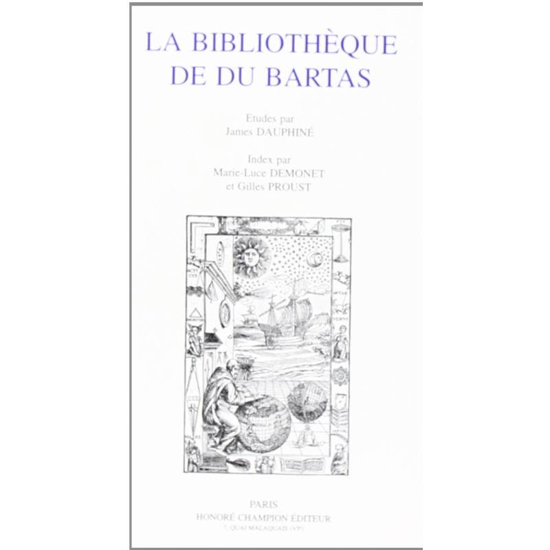 Comportant deux parties : l'une constituée d'études, par James Dauphiné, l'autre formée de l'index de La Sepmaine, établi par Marie-Luce Demonet et Gilles Proust. La Bibliotheque de Du Bartas a l'ambition de montrer comment Du Bartas use du savoir et écrit une œuvre encyclopédique à finalité théologique. Héritier de Ronsard, « le divin gascon » a recherché par la poésie et l'encyclopédisme, à traduire l'éblouissant spectacle des premiers matins du monde. Le poème de La Sepmaine n'est pas le simple relevé, plus ou moins ordonné, des merveilles de la nature, car Du Bartas consciemment a construit son « épopée » comme un édifice, un palais. Au fil des VII Jours de La Sepmaine apparait et se dessine une construction réceptacle de toute sagesse et de toute science, la bibliothèque. La Sepmaine est l'illustration exemplaire d'un de bibliotheca que Du Bartas n'a pas écrit, mais auquel, bien avant Borges et Eco, il a certainement rêvé.