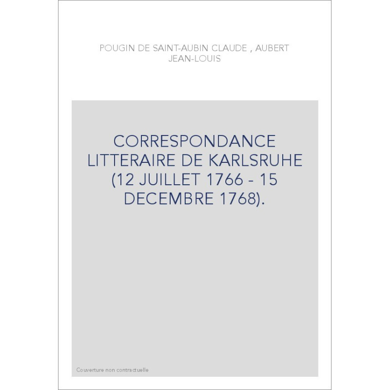 CORRESPONDANCE LITTERAIRE DE KARLSRUHE. TOME III (12 JUILLET 1766 - 15 DECEMBRE 1768).