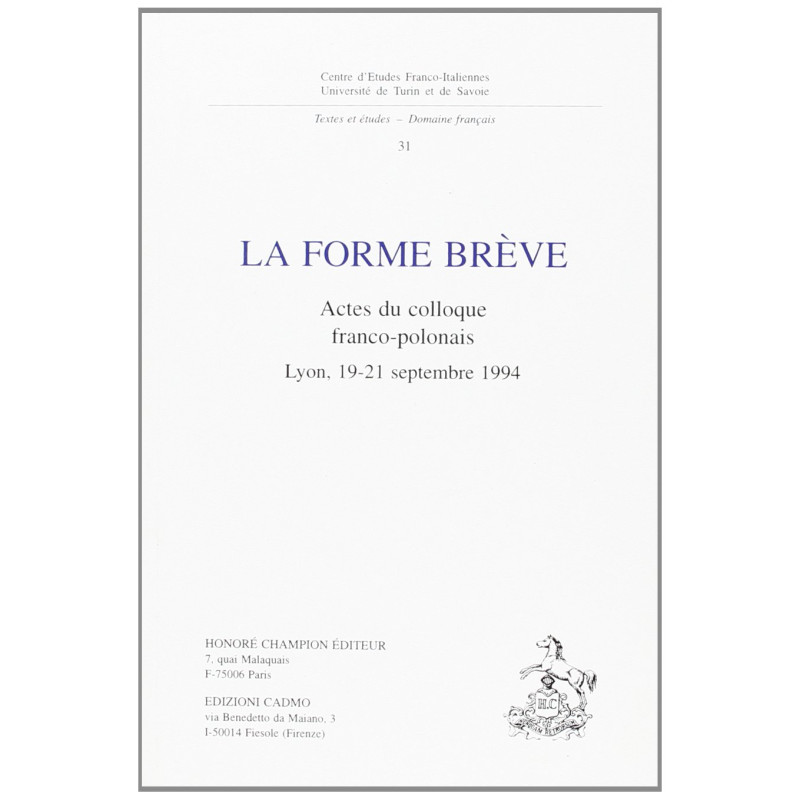 Le colloque international La forme brève, qui s'est tenu à l'Université Lumière Lyon 2, les 19, 20, 21 septembre 1994, a réuni des universitaires français, polonais, italiens et espagnols.
