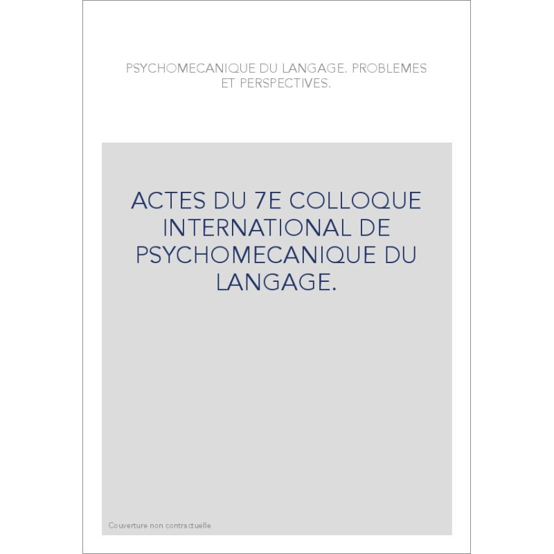 Actes du 7eme colloque international de psychomécanique du langage. Textes publiés sous la direction de P. de Carvalho et O. Soutet.