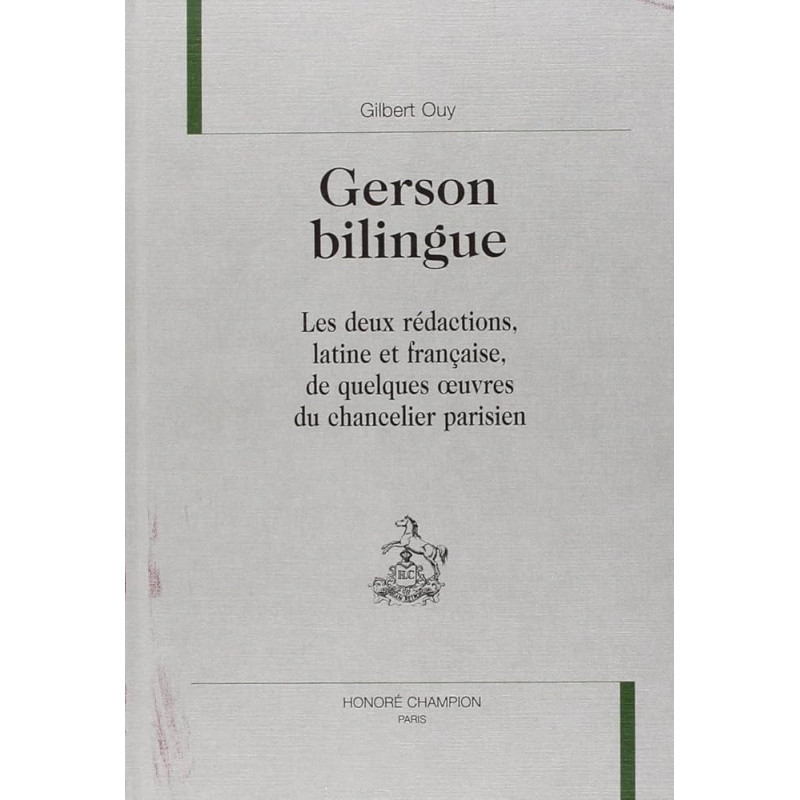 Jean Gerson (1363-1429) est l’un des seuls auteurs français à avoir rédigé certaines de ses œuvres en deux versions, l’une en latin, l’autre en langue vulgaire. Pour qui s’intéresse au bilinguisme médiéval, phénomène encore trop mal connu, la confrontation de ces deux rédactions est beaucoup plus riche d’enseignements que la comparaison de textes latins avec des traductions, souvent nettement postérieures, faites par des gens venant d’autres régions que les auteurs et n’ayant pas le même niveau de culture.
