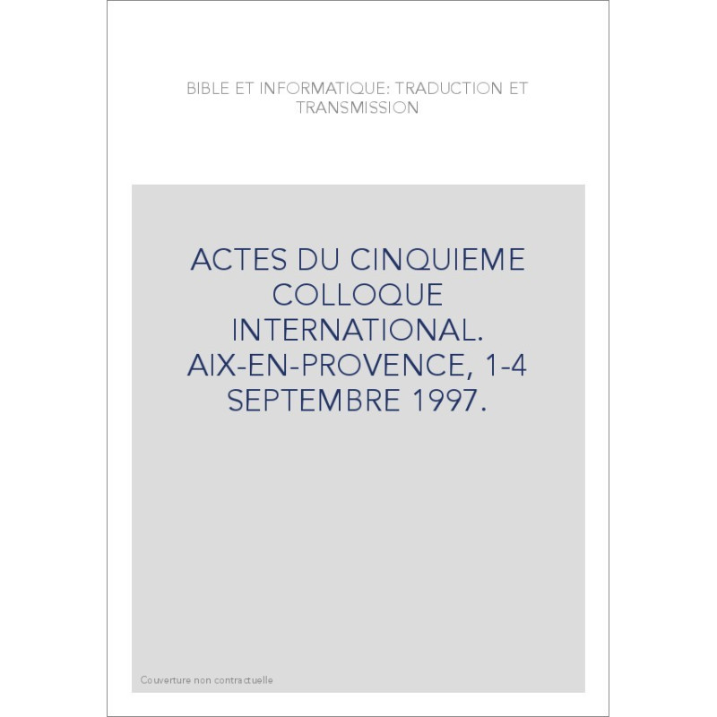 ACTES DU CINQUIEME COLLOQUE INTERNATIONAL. AIX-EN-PROVENCE, 1-4 SEPTEMBRE 1997.