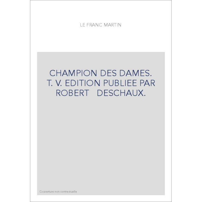 Le Champion des Dames est un des grands textes du milieu du XVe siècle. Son auteur, Martin Le Franc, prévôt de Lausanne et chanoine de Genève, a vigoureusement pris parti dans la Querelle des femmes qui agita le monde intellectuel à la suite des flèches antiféministes du Roman de la Rose de Jean de Meun. Martin est intervenu en faveur du beau sexe dans cet ample poème allégorique de 24 384 octosyllabes. Robert Deschaux présente ici la première édition savante et intégrale de l'œuvre. Cette œuvre qui s'inspire des allégories du Roman de la Rose, donne la parole aux adversaires et aux défenseurs des femmes. On débat tour à tour de la nature et des effets complexes de l'amour (livre I), de la dignité du mariage et des femmes (livre II), des exigences d'un véritable amour (livre III), des femmes célèbres à travers l'histoire (livre IV), enfin de la Vierge Marie, parangon de toutes les femmes (livre V). Ce brillant poème témoigne de la vaste culture de l'auteur (il est un bon connaisseur de la littérature antique), de son habileté dialectique, de son talent pour mettre en scène des personnages plaisants, de son écriture à la fois ramassée et enjouée. Les anecdotes ou allusions piquantes ne sont pas rares , les images pittoresques non plus. L'auteur sait manier l'ironie. Il porte des regards lucides sur la condition humaine. Il est aussi un remarquable rhétoricien. C'est dire le grand intérêt d'une œuvre jusqu'alors injustement méconnue.