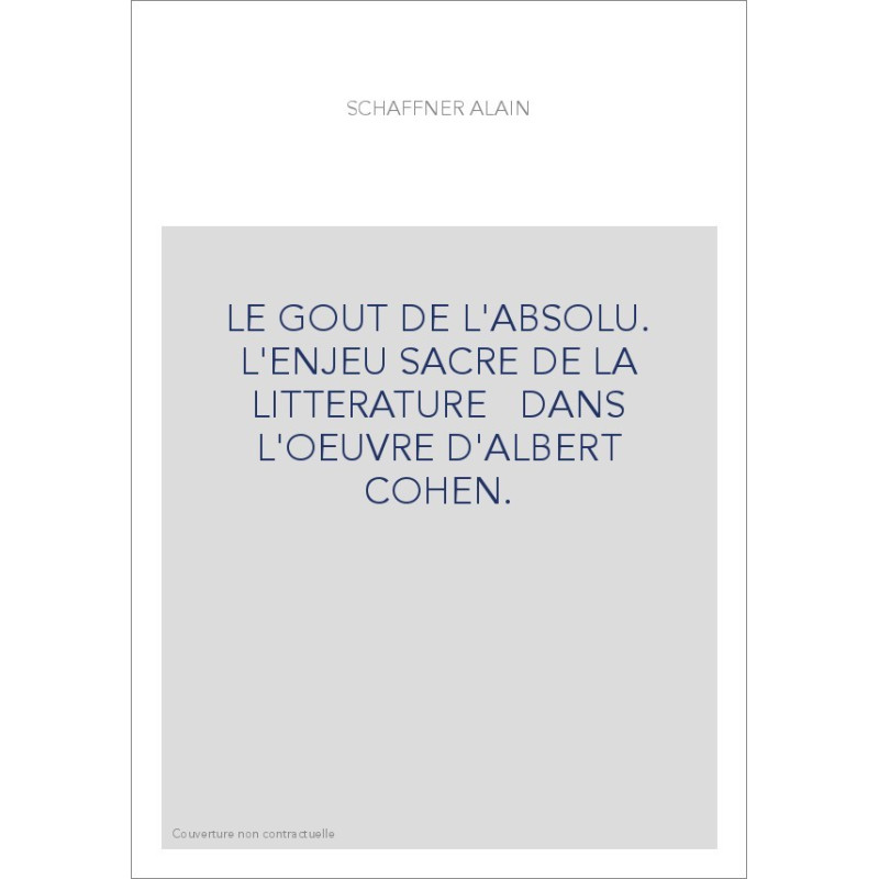 LE GOUT DE L'ABSOLU. L'ENJEU SACRE DE LA LITTERATURE DANS L'OEUVRE D'ALBERT COHEN.