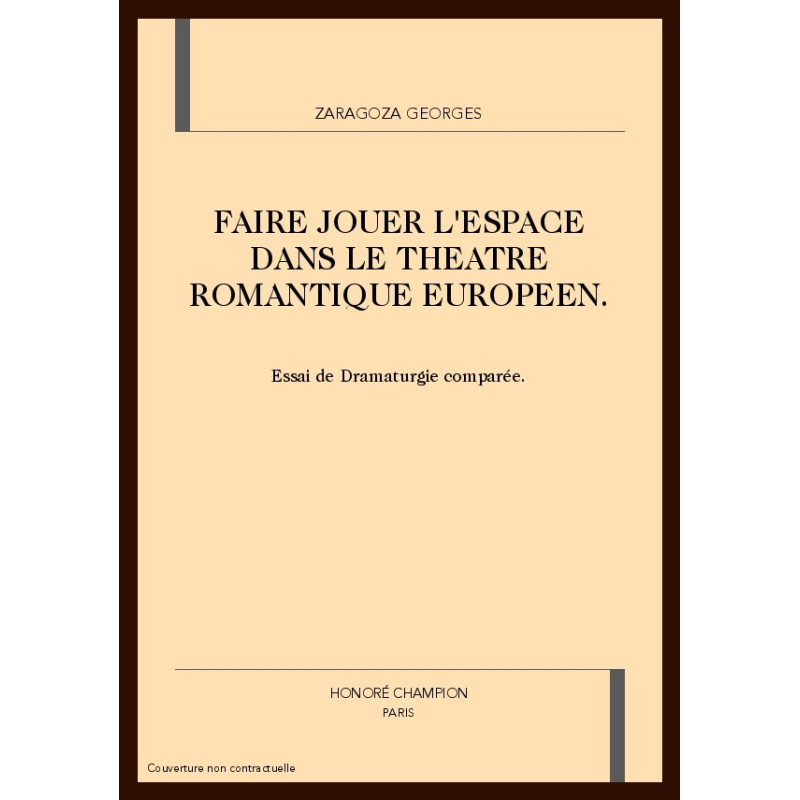 On ne conteste plus le statut particulier du texte théâtral, texte dont on se demande même s'il faut encore le considérer comme littéraire, tant il appelle le spectacle, comme la partition musicale appelle l'instrument et le concert qui vont lui donner existence. Choisir un point de vue dramaturgique, c'est engager une réflexion sur la virtualité spectaculaire inhérente à tout texte écrit pour la scène. Le romantisme est un phénomène européen, on le sait, et le théâtre a été assez rapidement l'un des genres les plus prisés de cette école; avec, il est vrai, des différences sensibles d'un pays à l'autre. C'est en France et en Espagne essentiellement qu'une véritable production dramatique romantique a vu le jour, à des périodes à peu près contemporaines Il s'agira d'étudier cette partition qu'est le texte théâtral, pour analyser les modalités de son élaboration en relation avec un espace provisoirement virtuel, afin de mettre en évidence que le théâtre romantique européen, pour l'essentiel les productions française et espagnole, marque une étape de mutation capitale dans l'histoire du genre, celle où l'écriture du texte théâtral est envisagée en termes d'espace.