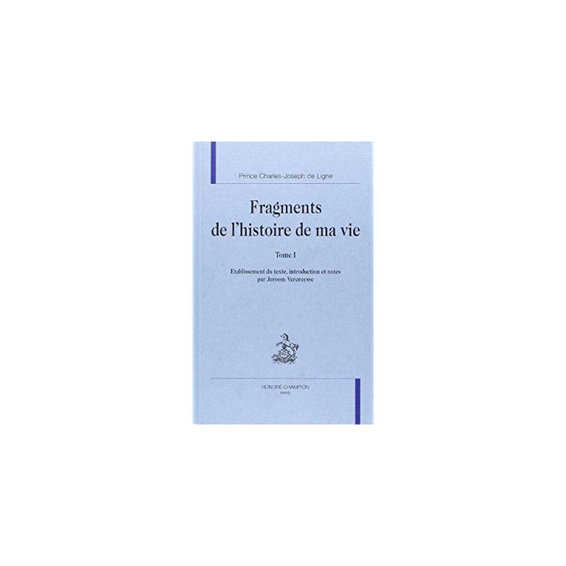Le prince Charles-Joseph de Ligne (1735-1814) est célèbre et mal connu. Ce n'est pas le moindre paradoxe de ce militaire spirituel, écologiste avant la lettre, auteur, diplomate, l'homme aux "cinq ou six patries". Mais cet Européen unique est enseveli sous les compliments, les jugements qui ressassent inlassa-blement les mêmes "bons mots", les mêmes anecdotes vraies ou fausses, citent les mêmes textes, souvent mal édités, et qui ne représentent qu'une faible partie de son œuvre. Le public cultivé mérite mieux. Depuis une douzaine d'années des signes évidents d'un réveil des études "lignistes" se multiplient. L'absence d'une édition critique et scientifique de ses œuvres majeures ne s'en fait que plus sentir. Dans cette optique, ses mémoires, les fameux Fragments de l'histoire de ma vie jouent un rôle de première importance. Jeroom Vercruysse a pu travailler sur les manuscrits conservés en mains privées et en découvrir d'autres totalement inconnus. Son travail propose un texte enfin sûr, complet et vivant. Un autre personnage que le "prince rose", libertin ou léger de la tradition émerge ici. Ces pages nous offrent ses analyses souvent hardies, toujours piquantes sur son époque, ses contemporains, Versailles, Vienne, Bruxelles, Saint-Petersbourg, l'Ancien Régime, la Révolution, l'Empire napoléonien. Un homme y confesse avec une rare franchise ses passions, ses doutes, ses douleurs parfois intimes, toujours émouvants. Le présent volume, tome Ier de l'édition, offre, outre une Introduction détaillée, le texte du manuscrit le plus complet des Fragments de l'histoire de ma vie.