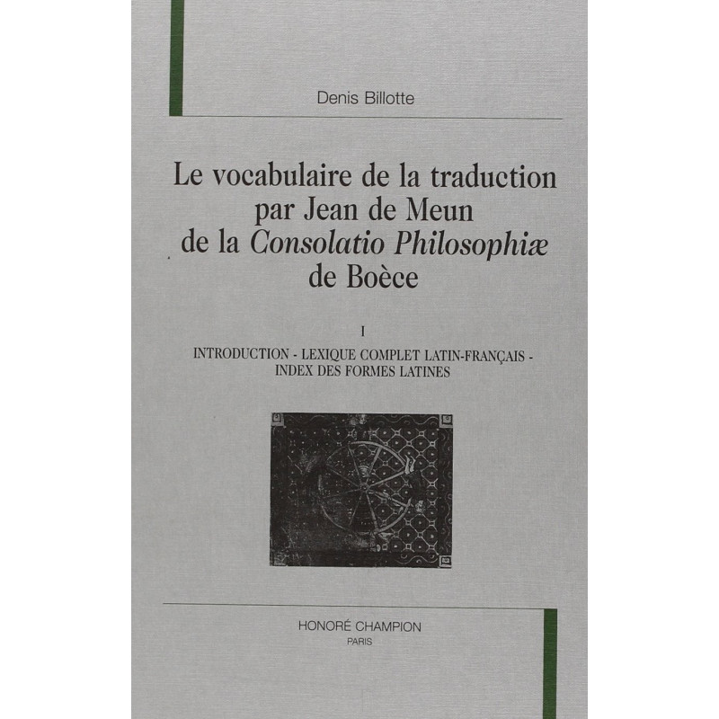 LE VOCABULAIRE DE LA TRADUCTION PAR JEAN DE MEUN DE LA "CONSOLATIO PHILOSOPHIAE" DE BOECE