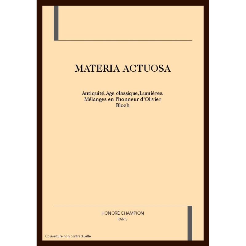 MATERIA ACTUOSA. ANTIQUITE, AGE CLASSIQUE, LUMIERES.