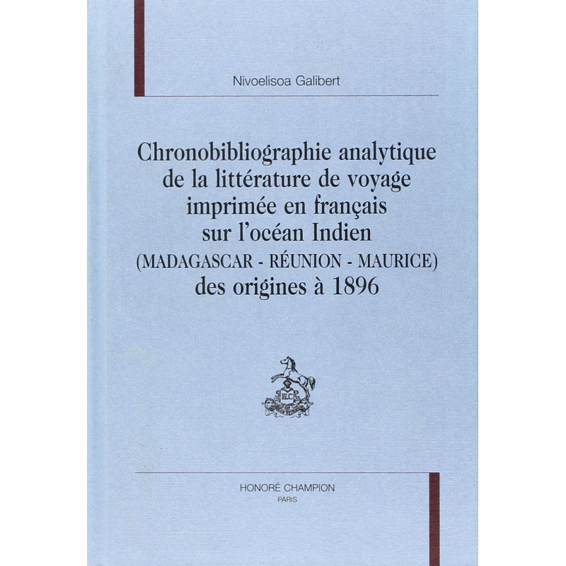 Ce répertoire analytique de la littérature de voyage imprimée en français depuis Les Singularitez... d'André Thevet (1558) jusqu'à l'anonyme Histoire de la campagne de Madagascar pour les soldats par un soldat (1896) a l'ambition d'être un instrument utile à tout indianocéaniste désireux de se positionner en tant que tel mais aussi à tout chercheur en sciences humaines à l'heure où la traversée des espaces et le contact des cultures occupent une place privilégiée dans l'histoire des mentalités. L'introduction générale présente une synthèse des derniers développements sur la problématique du voyage, puis sur les rapports du regard de l'autre et de l'indianocéanisme. Elle met ainsi au jour l'existence d'un réseau Océan Indien dont les axes porteurs sont à la fois les mêmes (voyages, vérités et mensonges...) et autres (l'identité indianocéaniste) que dans les derniers apports de la recherche mondiale. Dans le corps du répertoire, chaque notice recense les thèmes et localise l'ouvrage référencé. L'ensemble s'accompagne de trois index auteurs, titres et thèmes et se complète d'une bibliographie générale sur la question du voyage. Cette Chronobibliographie... contribue ainsi à continuer les classiques Boucher de la Richarderie, Ternaux-Compans, Grandidier et Roda sur les ouvrages anciens concernant le voyage.