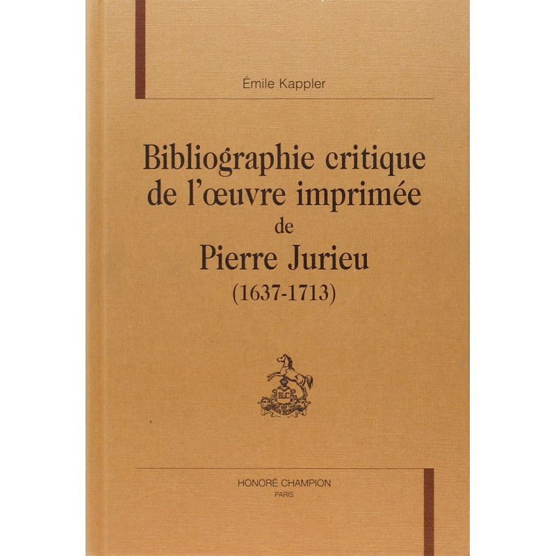 BIBLIOGRAPHIE CRITIQUE DE L'OEUVRE IMPRIMEE DE PIERRE JURIEU (1637-1713)