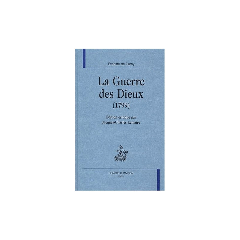C'est en 1799, à l'extrême fin d'un XVIIIe siècle fertile en bouleversements philosophiques et littéraires, que paraît La Guerre des Dieux anciens et modernes d'Évariste de Parny (1753-1814). L'auteur, déjà connu comme le chantre élégiaque de la jeune Éléonore dans ses Poésies érotiques (1778 et 1784) et le poète de la couleur locale par ses Chansons madécasses (1787), entre cette fois dans une veine moins "angélique".