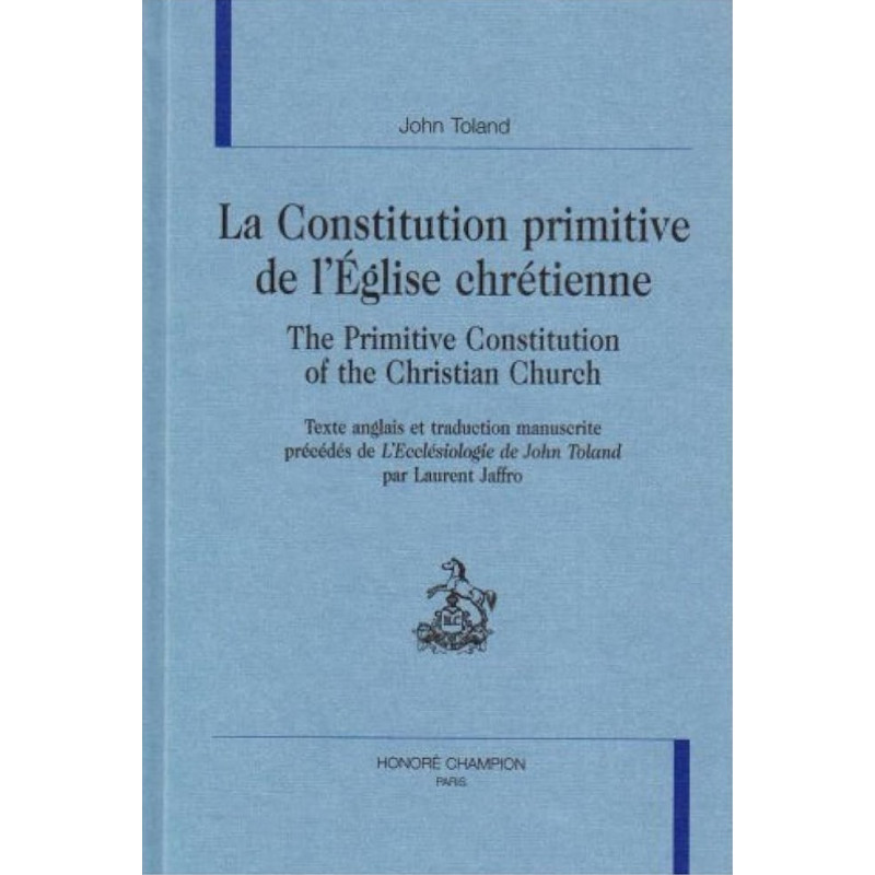 Une traduction française manuscrite du XVIIIe siècle sommeillait dans le fonds Montbret de la Bibliothèque municipale de Rouen. L'original anglais avait été imprimé en 1726 dans le recueil posthume des papiers de John Toland, irlandais, panthéiste, républicain et fanfaron. Cette édition réunit les deux textes et les fait précéder d'une étude, L'ecclésiologie de John Toland.