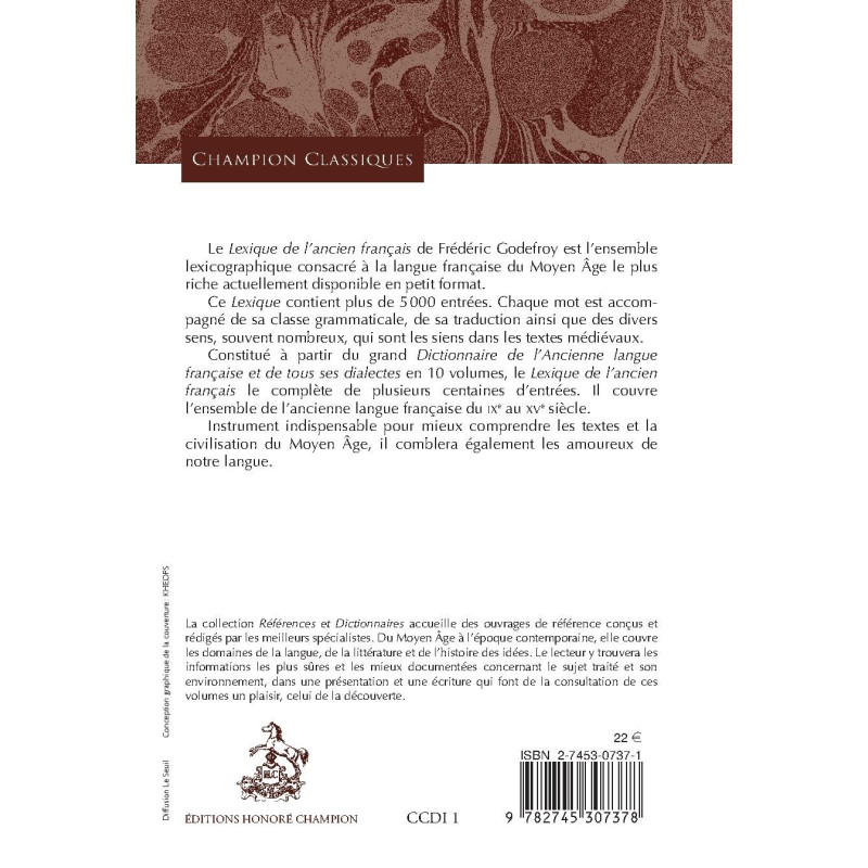 Le Lexique de l`ancien français de Frédéric Godefroy est l`ensemble lexicographique consacré à la langue française du Moyen Âge le plus riche actuellement disponible en petit format.