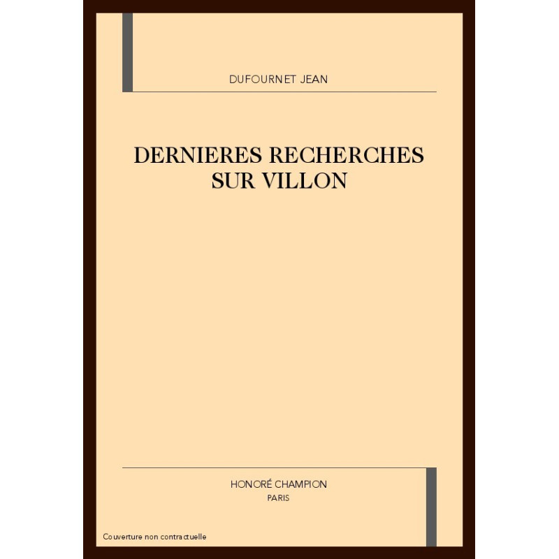 DERNIERES RECHERCHES SUR VILLON