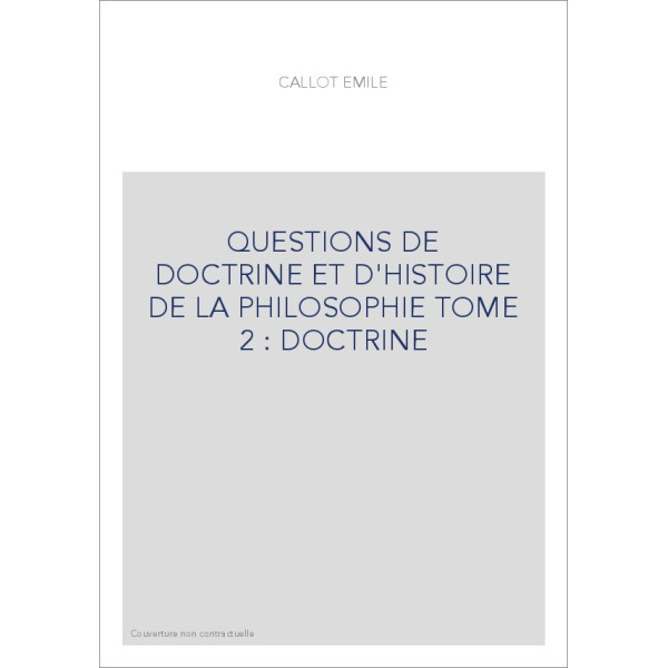 QUESTIONS DE DOCTRINE ET D'HISTOIRE DE LA PHILOSOPHIE TOME 2 : DOCTRINE