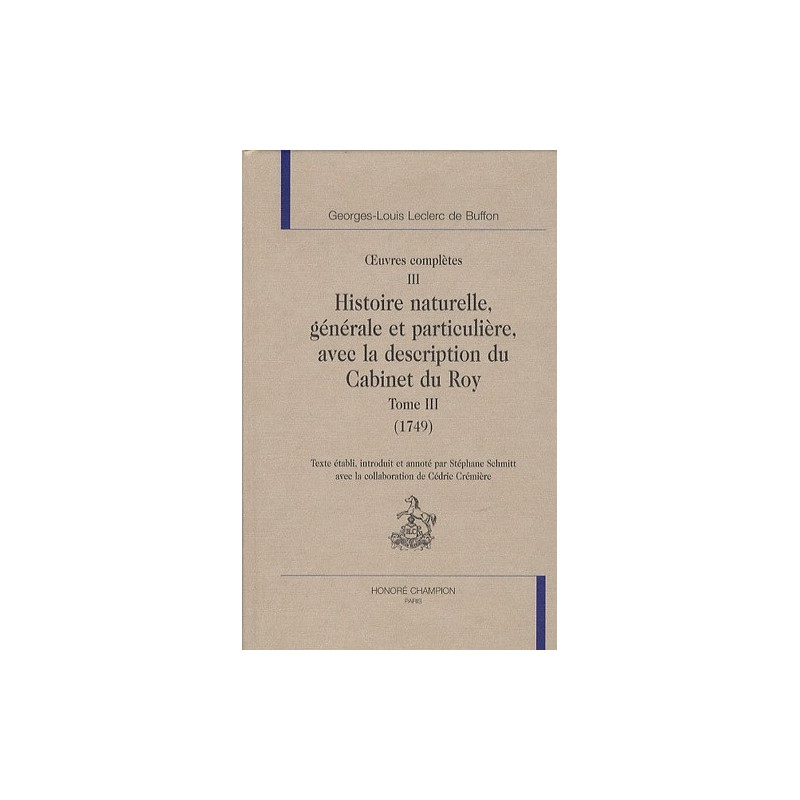 OEUVRES COMPLETES VOL III. HISTOIRE NATURELLE,GENERALE ET PARTICULIERE AVEC LA DESCRIPTION DU CABINET DU ROY