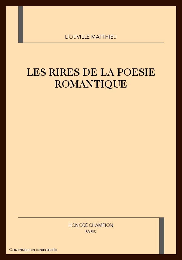 Le romantisme n'est pas célèbre pour l'humour de sa poésie. L'objet de cet ouvrage est de montrer que cette image est fondée sur une vision partielle de la poésie de l'époque. Les rires noirs, satiriques, absurdes, ou encore le grotesque, l'ironie et l'humour se ménagent une place nouvelle en poésie non spécifiquement comique, tandis que le caractère potentiellement auto-parodique du poème romantique vient aussi brouiller les cartes. Le romantisme enrichit considérablement les qualités du rire, qui intègre désormais le champ du "poétique". Par ce biais, cet ouvrage s'intéresse donc aussi à la problématique plus générale de l'alliance du rire et du poétique, à laquelle le XIXe siècle répond par l'intégration du mot "humour", chargé de regrouper les valeurs nouvelles des deux termes.