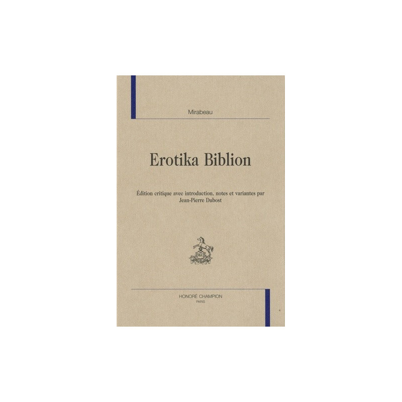 Erotika Biblion, écrit par Mirabeau lors de son emprisonnement au donjon de Vincennes, rappelle l'Hermaphroditus d'Antonio Beccadeli et précède de peu le Manuel d'érotologie classique de Friedrich Karl Forberg. Mêlant l'érudition à la dérision, Mirabeau affirme sa conception de la jouissance et propose une histoire des mœurs et de la sexualité d'une étonnante modernité. Aussi savant que licencieux, truffé d'allusions et de références érudites, renvoyant aux auteurs antiques, à l'Encyclopédie qu'il pille à souhait, à Buffon ou Érasme ainsi qu'à de nombreux traités, nourri des commentaires bibliques de Dom Calmet dont il tire de provocantes conclusions, l'ouvrage fut condamné à la destruction en 1796. Il a connu plusieurs rééditions dès la fin du XVIIIe et attiré l'attention des érudits et des bibliophiles au XIXe ainsi que d'Apollinaire qui le publie dans la Bibliothèque des Curieux en 1910. La dernière édition en date parut chez Fayard dans la collection L'Enfer de la bibliothèque nationale en 1984. Mais il restait encore de nombreuses zones d'ombres à éclaircir et aucune édition n'avait jusqu'à maintenant tenu compte du manuscrit. Celle-ci, établie sur la base de l'édition princeps de 1783, intègre les variantes et ratures du manuscrit et contient le dernier chapitre resté inachevé, intitulé Zonah et consacré à l'histoire des courtisanes grecques. L'appareil critique renforce la parfaite cohérence de vue de l'ensemble, précise les intentions critiques et stratégiques du traité et met en évidence l'usage de la citation et les procédés de détournement à partir desquels Mirabeau a composé son texte.