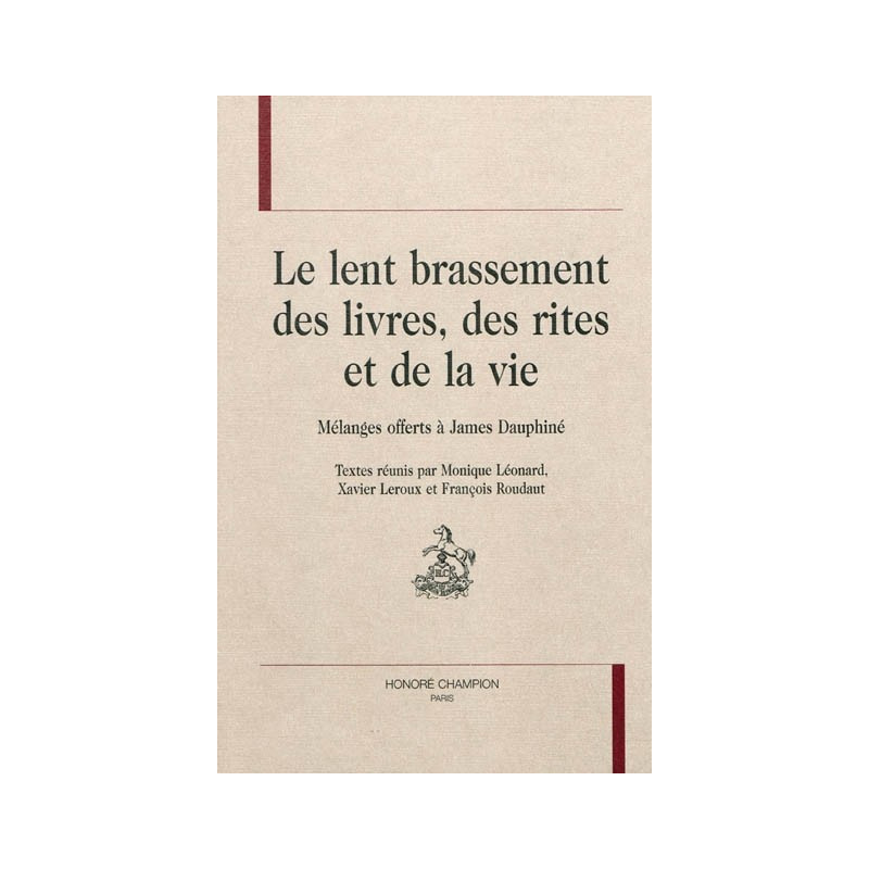 »Éditions Honoré Champion»LE LENT BRASSEMENT DES LIVRES, DES RITES ET DE LA VIE. MELANGES OFFERTS A JAMES DAUPHINE