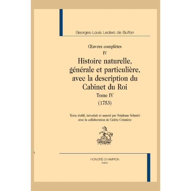 OEUVRES COMPLETES VOL IV. HISTOIRE NATURELLE, GENERALE ET PARTICULIERE AVEC LA DESCRIPTION DU CABINET DU ROI