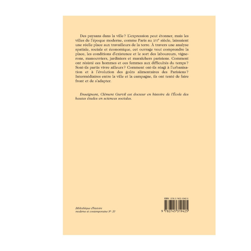 Des paysans dans la ville ? L'expression peut étonner, mais les villes de l'époque moderne, comme Paris au XVIe siècle, laissaient une réelle place aux travailleurs de la terre. À travers une analyse spatiale, sociale et économique, cet ouvrage veut comprendre la place, les conditions d'existence et le sort des laboureurs, vignerons, manouvriers, jardiniers et maraîchers parisiens. Comment ont résisté ces hommes et ces femmes aux difficultés du temps ? Sont-ils partis vivre ailleurs? Comment ont-ils réagi à l'urbanisation et à l'évolution des goûts alimentaires des Parisiens? Intermédiaires entre la ville et la campagne, ils ont tenté de faire front et de s'adapter.