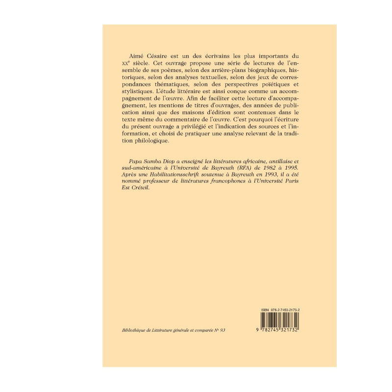 Aimé Césaire est un des écrivains les plus importants du XXe siècle. Cet ouvrage propose une série de lectures de l'ensemble de ses poèmes, selon des arrière-plans biographiques, historiques, selon des analyses textuelles, selon des jeux de correspondances thématiques, selon des perspectives poïétiques et stylistiques. L'étude littéraire est ainsi conçue comme un accompagnement de l'oeuvre. Afin de faciliter cette lecture d'accompagnement, les mentions de titres d'ouvrages, des années de publication ainsi que des maisons d'édition sont contenues dans le texte même du commentaire de l'oeuvre. C'est pourquoi l'écriture du présent ouvrage a privilégié et l'indication des sources et l'information, et choisi de pratiquer une analyse relevant de la tradition philologique. Papa Samba Diop a enseigné les littératures africaine, antillaise et sud-américaine à l'Université de Bayreuth (RFA) de 1982 à 1995. Après une Habilitationsschrift soutenue à Bayreuth en 1993, il a été nommé professeur de littératures francophones à l'Université Paris Est Créteil.