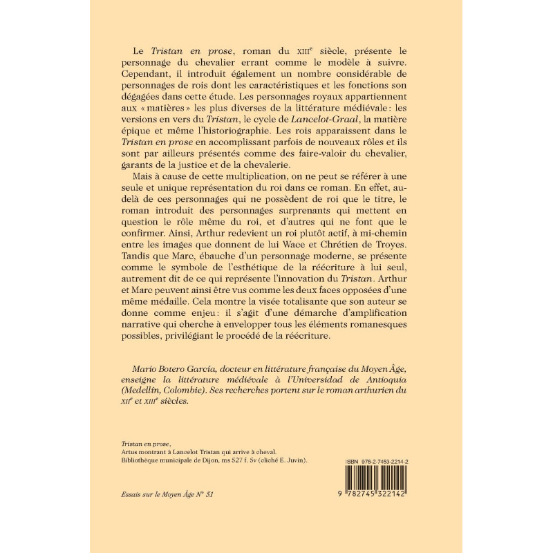 Le Tristan en prose, roman du XIIIe siècle, présente le personnage du chevalier errant comme le modèle à suivre. Cependant, il introduit également un nombre considérable de personnages de rois dont les caractéristiques et les fonctions son dégagées dans cette étude. Les personnages royaux appartiennent aux "matières " les plus diverses de la littérature médiévale : les versions en vers du Tristan, le cycle de Lancelot-Graal, la matière épique et même l`historiographie. Les rois apparaissent dans le Tristan en prose en accomplissant parfois de nouveaux rôles et ils sont par ailleurs présentés comme des faire-valoir du chevalier, garants de la justice et de la chevalerie. Mais à cause de cette multiplication, on ne peut se référer à une seule et unique représentation du roi dans ce roman. En effet, au-delà de ces personnages qui ne possèdent de roi que le titre, le roman introduit des personnages surprenants qui mettent en question le rôle même du roi, et d`autres qui ne font que le confirmer. Ainsi, Arthur redevient un roi plutôt actif, à mi-chemin entre les images que donnent de lui Wace et Chrétien de Troyes. Tandis que Marc, ébauche d`un personnage moderne, se présente comme le symbole de l`esthétique de la réécriture à lui seul, autrement dit de ce qui représente l`innovation du Tristan. Arthur et Marc peuvent ainsi être vus comme les deux faces opposées d`une même médaille. Cela montre la visée totalisante que son auteur se donne comme enjeu: il s`agit d`une démarche d`amplification narrative qui cherche à envelopper tous les éléments romanesques possibles, privilégiant le procédé de la réécriture. Mario Botero GarcÃa, docteur en littérature française du Moyen Âge, enseigne la littérature médiévale à l`Universidad de Antioquia (MedellÃn, Colombie). Ses recherches portent sur le roman arthurien du XIIe et XIIIe siècles.