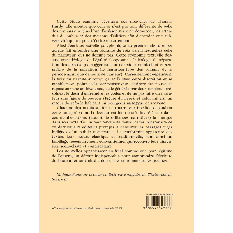 LES NOUVELLES DE THOMAS HARDY STRATEGIES NARRATIVES D'UNE ECRITURE SOUS CONTRAINTE