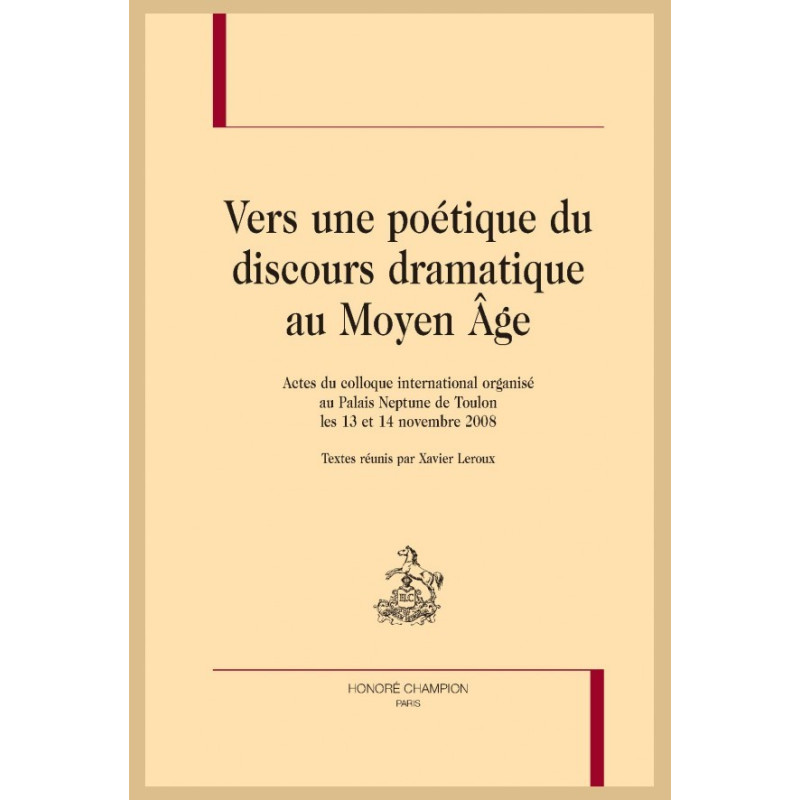 VERS UNE POETIQUE DU DISCOURS DRAMATIQUE AU MOYEN AGE