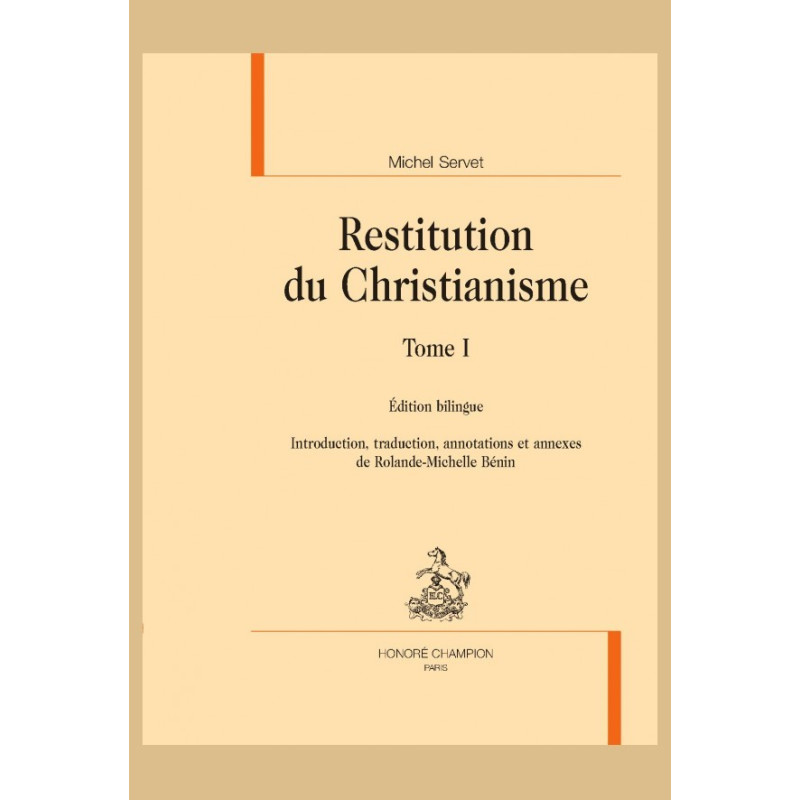 La Restitution du Christianisme est le grand-œuvre du médecin humaniste Michel Servet (1511-1553), dont l`histoire est liée à celle de Calvin. Éveillé par Érasme à l`antidogmatisme, Servet quitte la suite de Charles-Quint pour rejoindre les réformateurs rhénans, puis s`en sépare après ses deux premiers livres. Mu par " une sorte d`impulsion divine ", il proclame insuffisante la révolution luthérienne. Le christianisme reviendra à ses sources par une lecture renouvelée des textes fondateurs, à la lumière de la philologie et de l`histoire. Parallèlement à sa carrière scientifique, armé des axiomes d`Aristote et de la Bible, il convoque les Pères anténicéens pour construire avec les philosophes présocratiques, hermétiques et platoniciens, une cosmogonie en harmonie avec la révélation messianique. La Restitutio, au discours souvent autobiographique et lyrique, est la plus remarquable manifestation littéraire de la Réforme radicale. Après Les erreurs de La Trinité (2008), les Dialogues et La justice du royaume du Christ (2009), la Restitution est éditée avec sa première traduction française par R.M. Bénin, agrégée et docteur en Langues et Littératures anciennes, membre de l`Association Internationale d`Études Patristiques et du Michael Servetus` Institute.