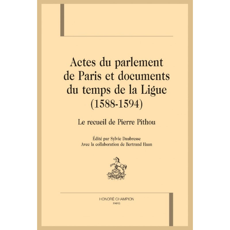 ACTES DU PARLEMENT DE PARIS ET DOCUMENTS DU TEMPS DE LA LIGUE (1588-1594) LE RECUEIL DE PIERRE PITHOU