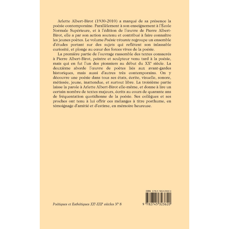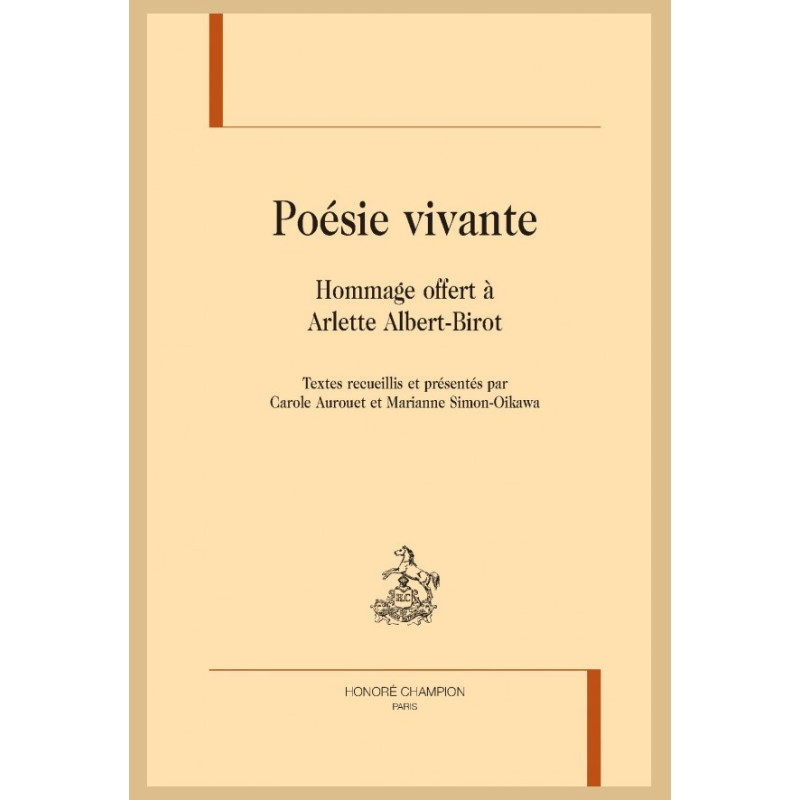 POÉSIE VIVANTE MÉLANGES OFFERTS À ARLETTE ALBERT-BIROT