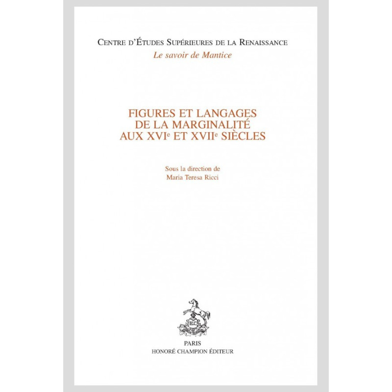 Ce volume réunit les actes du colloque « Figures et langages de la marginalité », qui a eu lieu en octobre 2010 au Centre d’Études Supérieures de la Renaissance de Tours. Cette rencontre proposait d’étudier les diverses figures de « marginaux » présentes dans la littérature européenne des XVIe-XVIIe siècles. Souvent, ces figures (les mendiants, les vagabonds, les voleurs, les pirates, les sorcières, etc.) ne semblent pas subir leur marginalité, mais bien au contraire la revendiquer. Le marginal est une figure « hors norme » qui s’oppose par son comportement à l’ordre établi. S’il est parfois toléré, ses différences le font toutefois apparaître comme subversif. Produit et reflet inversé d’une société, il devient un sujet littéraire et un instrument pour toute une littérature qui, consciemment ou non, propose la mise en question d’un ordre établi.