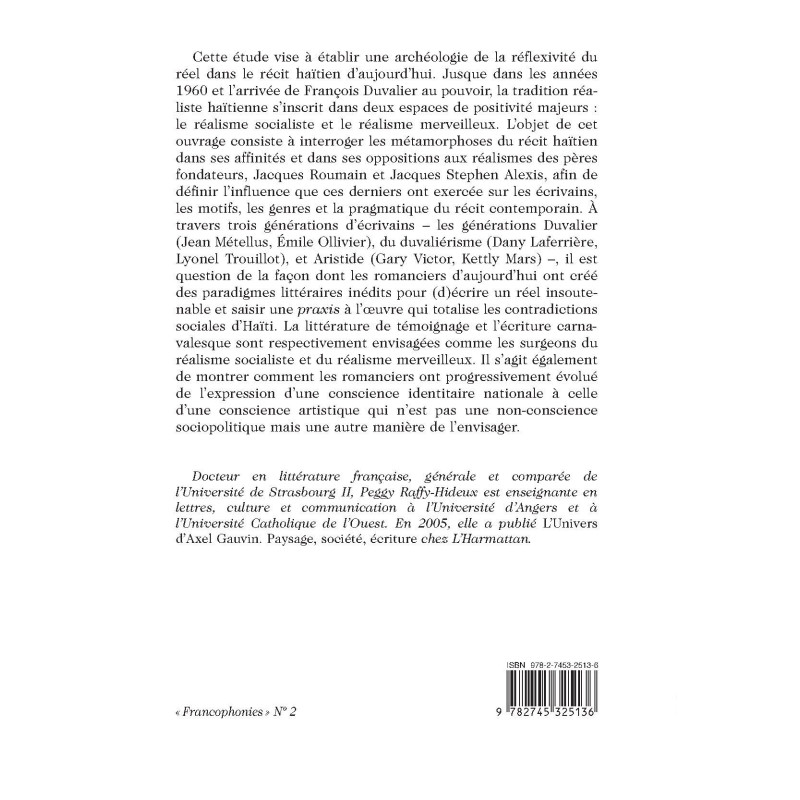 Cette étude vise à établir une archéologie de la réflexivité du réel dans le récit haïtien d’aujourd’hui. Jusque dans les années 1960 et l’arrivée de François Duvalier au pouvoir, la tradition réaliste haïtienne s’inscrit dans deux espaces de positivité majeurs : le réalisme socialiste et le réalisme merveilleux. L’objet de cet ouvrage consiste à interroger les métamorphoses du récit haïtien dans ses affinités et dans ses oppositions aux réalismes des pères fondateurs, Jacques Roumain et Jacques Stephen Alexis, afin de définir l’influence que ces derniers ont exercée sur les écrivains, les motifs, les genres et la pragmatique du récit contemporain. À travers trois générations d’écrivains – les générations Duvalier (Jean Métellus, Émile Ollivier), du duvaliérisme (Dany Laferrière, Lyonel Trouillot), et Aristide (Gary Victor, Kettly Mars) –, il est question de la façon dont les romanciers d’aujourd’hui ont créé des paradigmes littéraires inédits pour (d)écrire un réel insoutenable et saisir une praxis à l’œuvre qui totalise les contradictions sociales d’Haïti. La littérature de témoignage et l’écriture carnavalesque sont respectivement envisagées comme les surgeons du réalisme socialiste et du réalisme merveilleux. Il s’agit également de montrer comment les romanciers ont progressivement évolué de l’expression d’une conscience identitaire nationale à celle d’une conscience artistique qui n’est pas une non-conscience sociopolitique mais une autre manière de l’envisager.