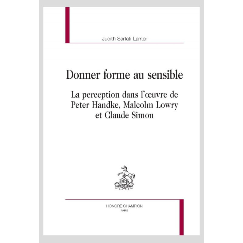 DONNER FORME AU SENSIBLE LA PERCEPTION DANS L'OEUVRE DE PETER HANDKE, MALCOLM LOWRY ET CLAUDE SIMON