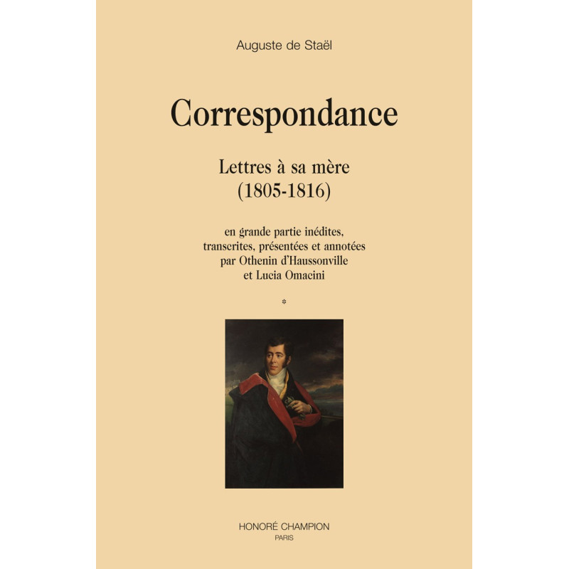 Ces lettres d’Auguste de Staël à sa mère (1805-1816) sont presque totalement inédites. Plus que d’une véritable correspondance, il s’agit d’une sorte de monologue, les lettres d’Auguste étant souvent restées sans réponse surtout pendant la période de l’exil, des Cent-Jours et de la Restauration. Celles de Mme de Staël ont toutefois existé, du moins en partie : égarées ou détruites, elles apparaissent en filigrane dans les réponses de son fils, ce dernier se pliant, en fidèle exécutant, aux ordres donnés et répondant tantôt avec désespoir, tantôt avec ironie, aux nombreux reproches qui lui sont adressés. Quand ces lettres n’existent pas, celles de son fils montrent une exactitude qui dément toute accusation de négligence. Jeune homme doté d’une très grande sensibilité, sans doute mal aimé et très souvent proche de la dépression, il manifeste un attachement compulsif pour sa mère. Cette correspondance est à plusieurs égards d’un intérêt certain : elle possède une grande valeur psychologique car elle apporte un regard nouveau sur Mme de Staël, montrant à la fois ses rapports avec ses enfants, ses exigences parfois inacceptables, ses souffrances réelles bien que souvent entachées d’égocentrisme. Elle offre surtout un témoignage en prise directe sur une période dramatique de l’histoire de France. L’apparat critique qui accompagne cette correspondance à des fins explicatives vise également à transformer cette monodie-dialogique en un échange choral, par l’introduction d’autres voix, d’autres témoignages, d’autres points de vue et relativise ce qui pouvait paraître cantonné aux seuls intérêts privés de la famille de Staël.