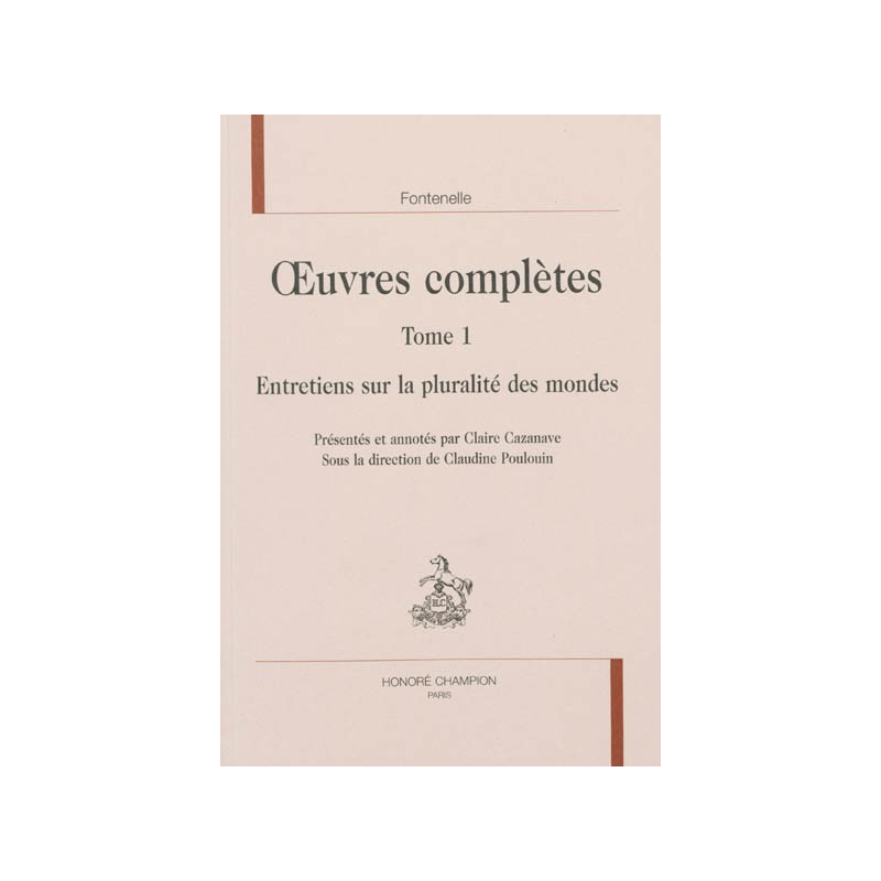 OEUVRES COMPLÈTES TOME 1 ENTRETIENS SUR LA PLURALITÉ DES MONDES