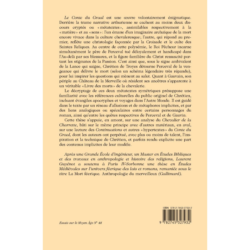 Cette thèse s’appuie, en amont, sur une analyse du Chevalier de la Charrette, bâti sur le même principe avec d’autres matériaux, en aval, sur une lecture des Continuations et autres «hypertextes» du Conte du Graal, dont les auteurs ont perpétué, avec plus ou moins de talent, l’inspiration et la technique de Chrétien, et parfois rendu explicite une part des contenus implicites de leur modèle.
