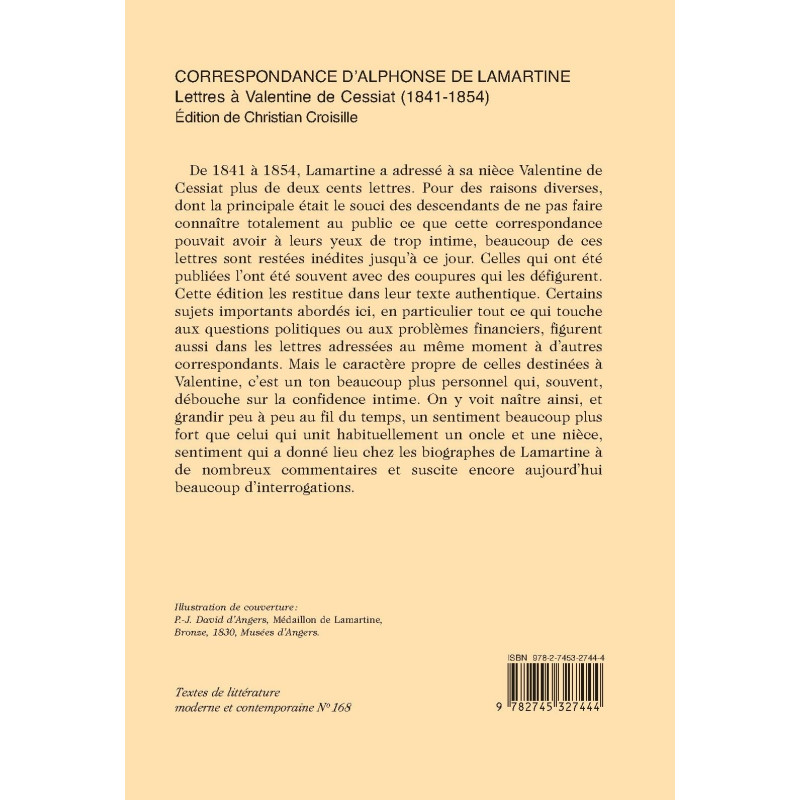 De 1841 à 1854, Lamartine a adressé à sa nièce Valentine de