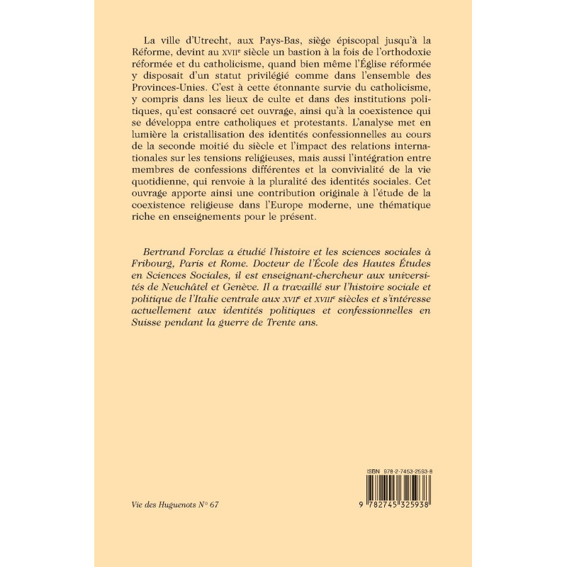 Réforme, devint au XVIIe siècle un bastion à la fois de l’orthodoxie réformée et du catholicisme, quand bien même l’Église réformée y disposait d’un statut privilégié comme dans l’ensemble des Provinces-Unies. C’est à cette étonnante survie du catholicisme, y compris dans les lieux de culte et dans des institutions politiques, qu’est consacré cet ouvrage, ainsi qu’à la coexistence qui se développa entre catholiques et protestants. L’analyse met en lumière la cristallisation des identités confessionnelles au cours de la seconde moitié du siècle et l’impact des relations internationales sur les tensions religieuses, mais aussi l’intégration entre membres de confessions différentes et la convivialité de la vie quotidienne, qui renvoie à la pluralité des identités sociales. Cet ouvrage apporte ainsi une contribution originale à l’étude de la coexistence religieuse dans l’Europe moderne, une thématique riche en enseignements pour le présent.