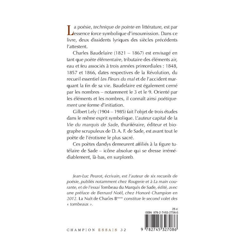 | Indic. sur auteur original | BAUDELAIRE SADE LELY |