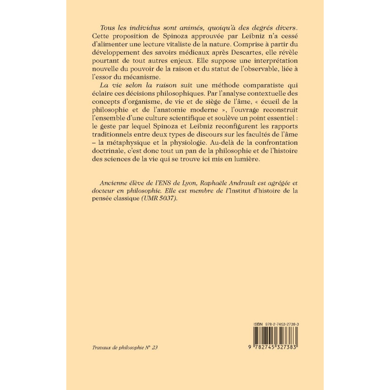 l’ensemble d’une culture scientifique et soulève un point essentiel : le geste par lequel Spinoza et Leibniz reconfigurent les rapports traditionnels entre deux types de discours sur les facultés de l’âme – la métaphysique et la physiologie. Au-delà de la confrontation doctrinale, c’est donc tout un pan de la philosophie et de l’histoire des sciences de la vie qui se trouve ici mis en lumière.
