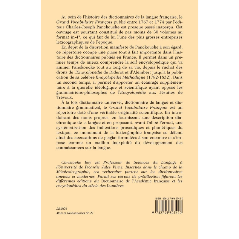 À la fois dictionnaire universel, dictionnaire de langue et dictionnaire grammatical, le Grand Vocabulaire François est un