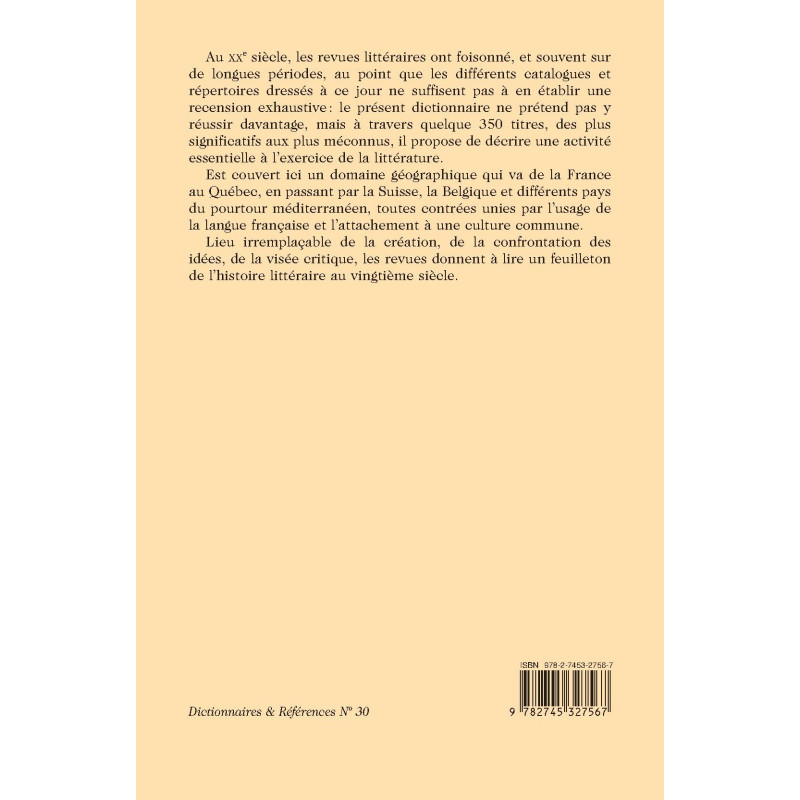 DICTIONNAIRE DES REVUES LITTERAIRES AU XXE SIÈCLE. DOMAINE FRANÇAIS