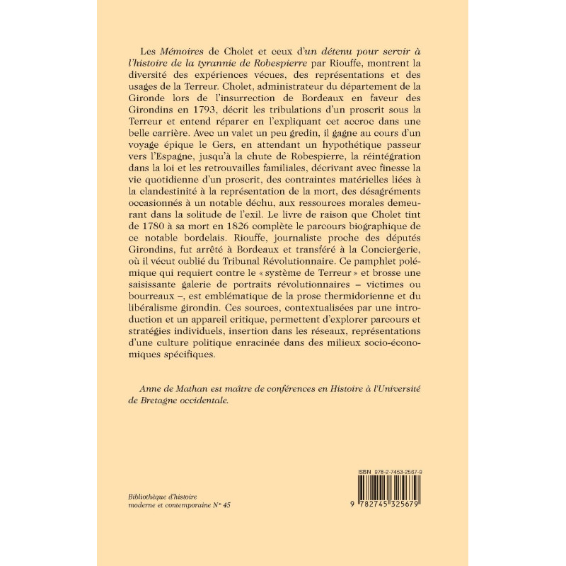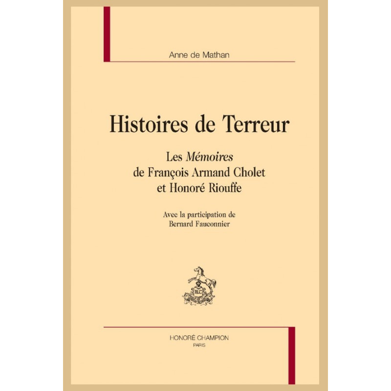 HISTOIRES DE TERREUR. LES MÉMOIRES DE FRANÇOIS ARMAND CHOLET ET HONORÉ RIOUFFE